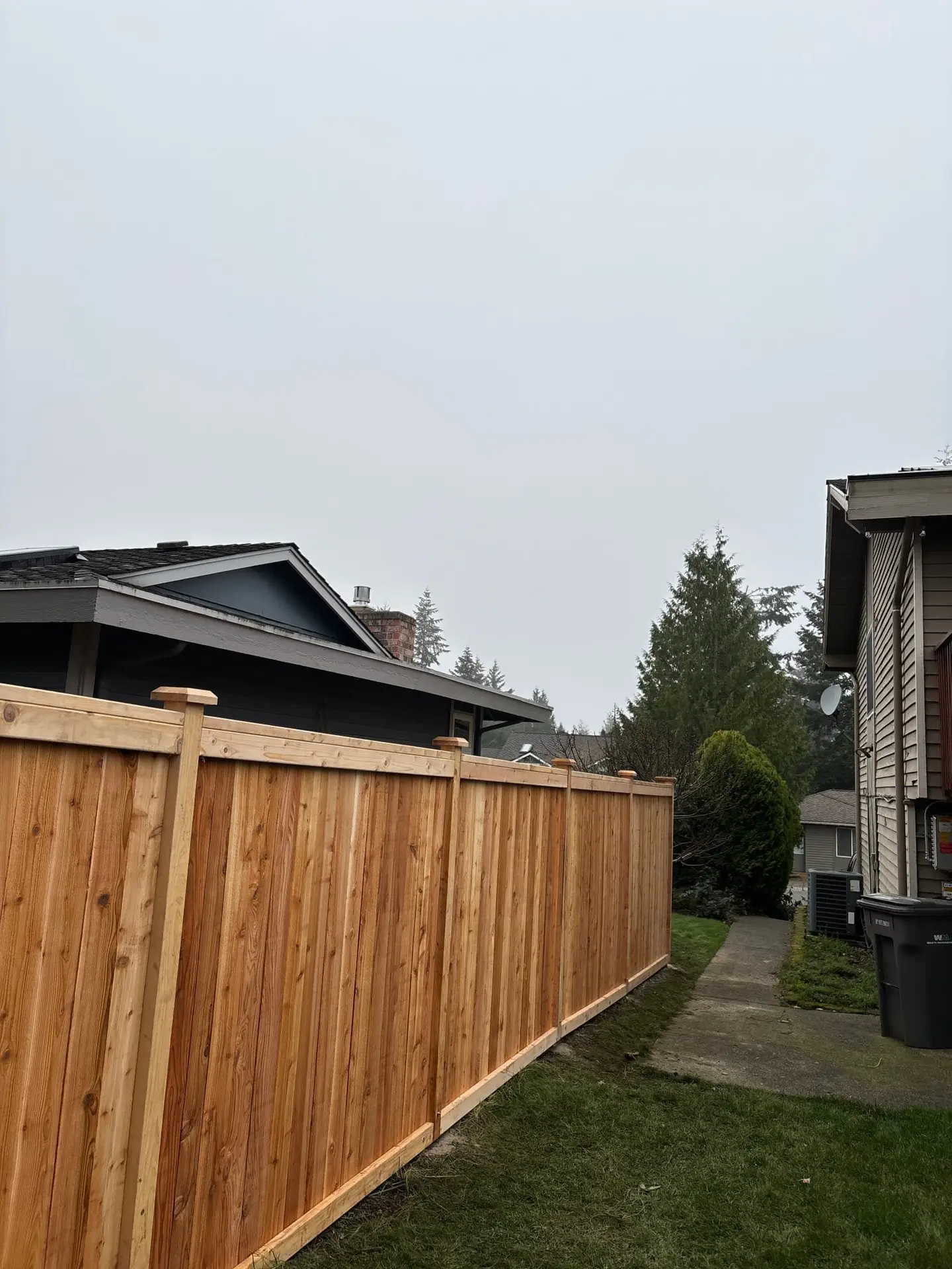 Old, rotting fences don’t just look bad—they drag down property value. That was the case for a homeowner in the 98058 area, where their deteriorating full panel fence needed a complete upgrade. The transformation? A fresh 6-foot cedar full panel fence with decorative lattice, cedar post caps, and a 4ft swing gate. Result: instant curb appeal and added value.