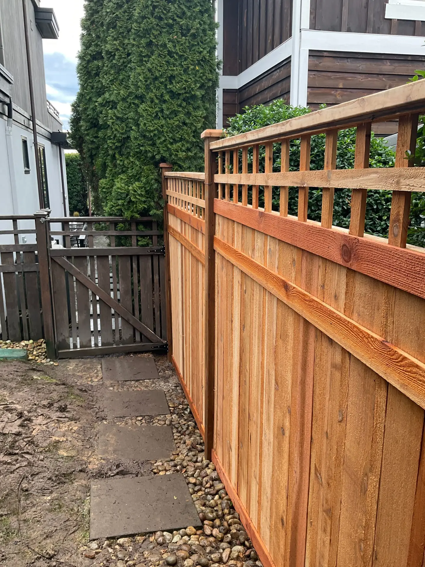 This isn’t just a good-looking fence—it’s built to last. Each post is pressure-treated to withstand harsh Northwest weather. Premium panels offer excellent privacy and block outside noise. A decorative lattice at the top brings extra elegance to any yard. Every cut, joint, and fastener was chosen for strength and clean lines. Our skilled team finished the entire installation in only one day, ensuring minimal disruption to your routine.